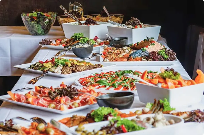 ご人数様によっては複数のお料理プランを組み合わせていただくことも可能です。 お料理の品数を増やせますので、特に女性やお子様などにご好評いただいております (例:シェフおすすめビュッフェを15名様分とシルバーBBQを15名様分など)