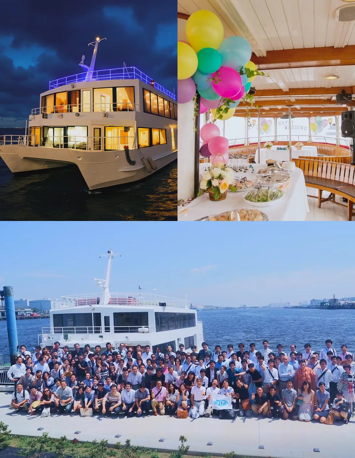 70隻以上、最大600名様まで対応可能。優雅な大型クルーザーから、少人数向けボート、洋風屋形船まで、あらゆるシーンに最適な一隻をご案内します。