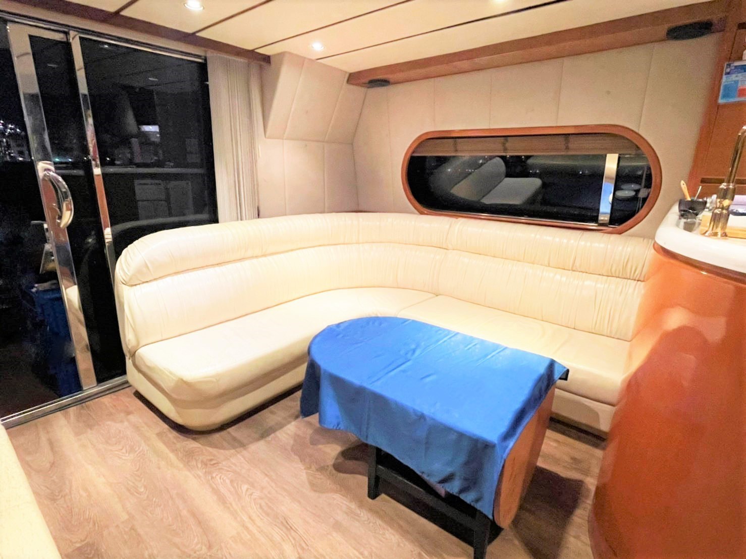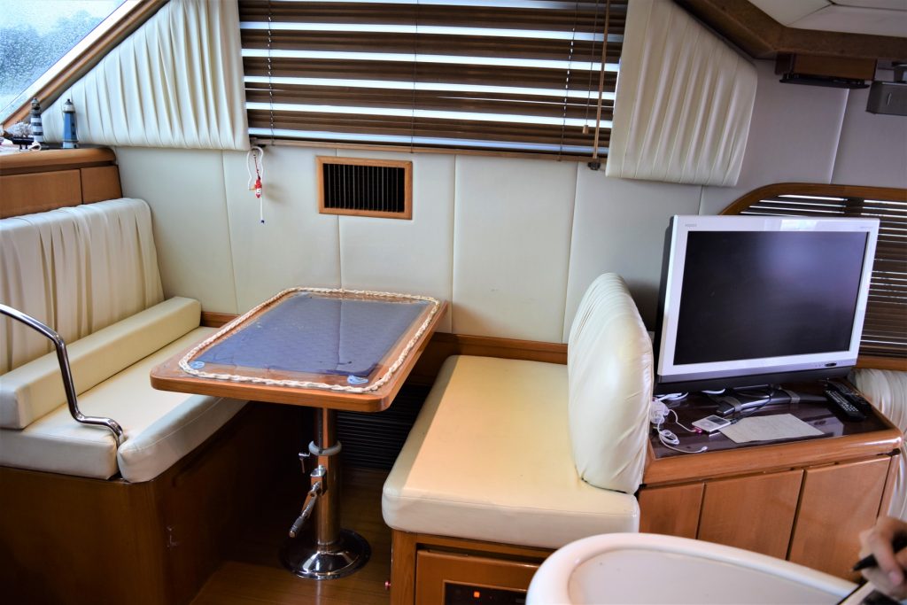 いわゆるカッコいいプライベート感溢れるクルーザーでゲストを招待したくなるサロン型となっています。愛嬌たっぷりの船長とクルーとの会話も必見です。
