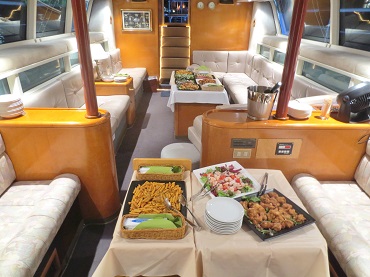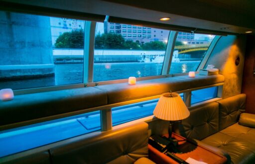 船内に色々なイスがあり、思い思いにお座りいただきくつろげます。