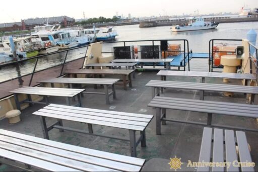 広々とした2階デッキにはテーブルと椅子を完備。ご飲食を楽しんでいただくのはもちろん、集合写真にもうってつけです。
