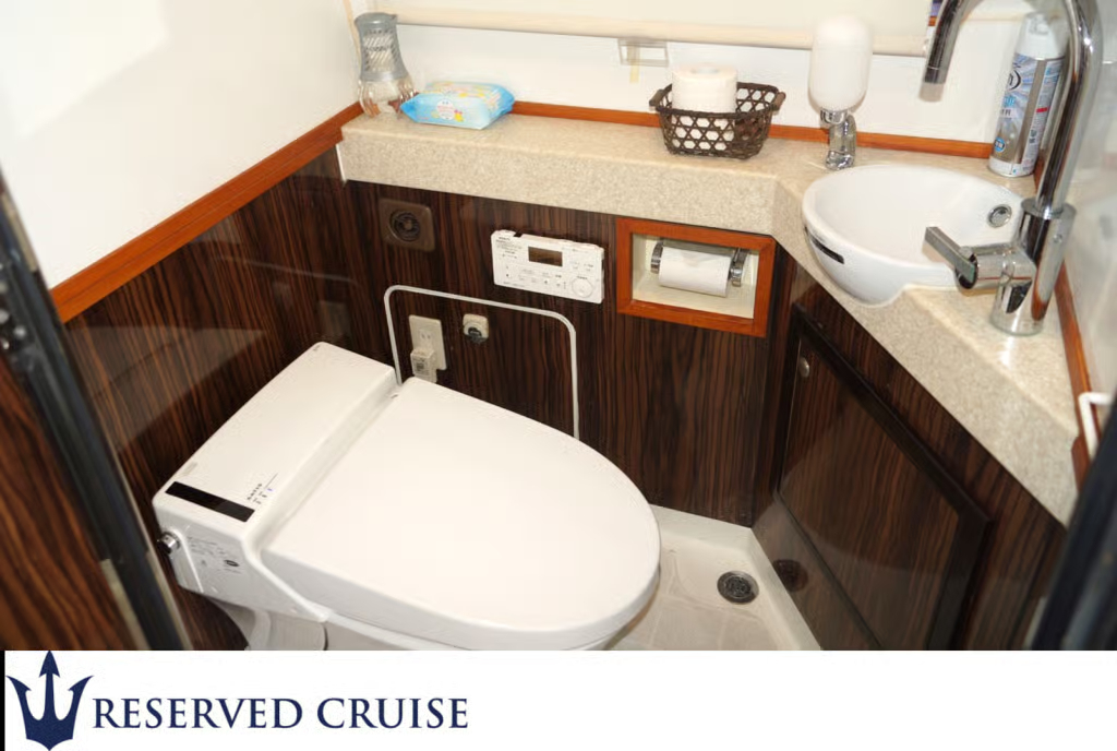 清潔感のある客室内と広々としたアフトデッキ・スカイブリッジが特徴。海水浴クルージングでも人気のクルーザーです。
