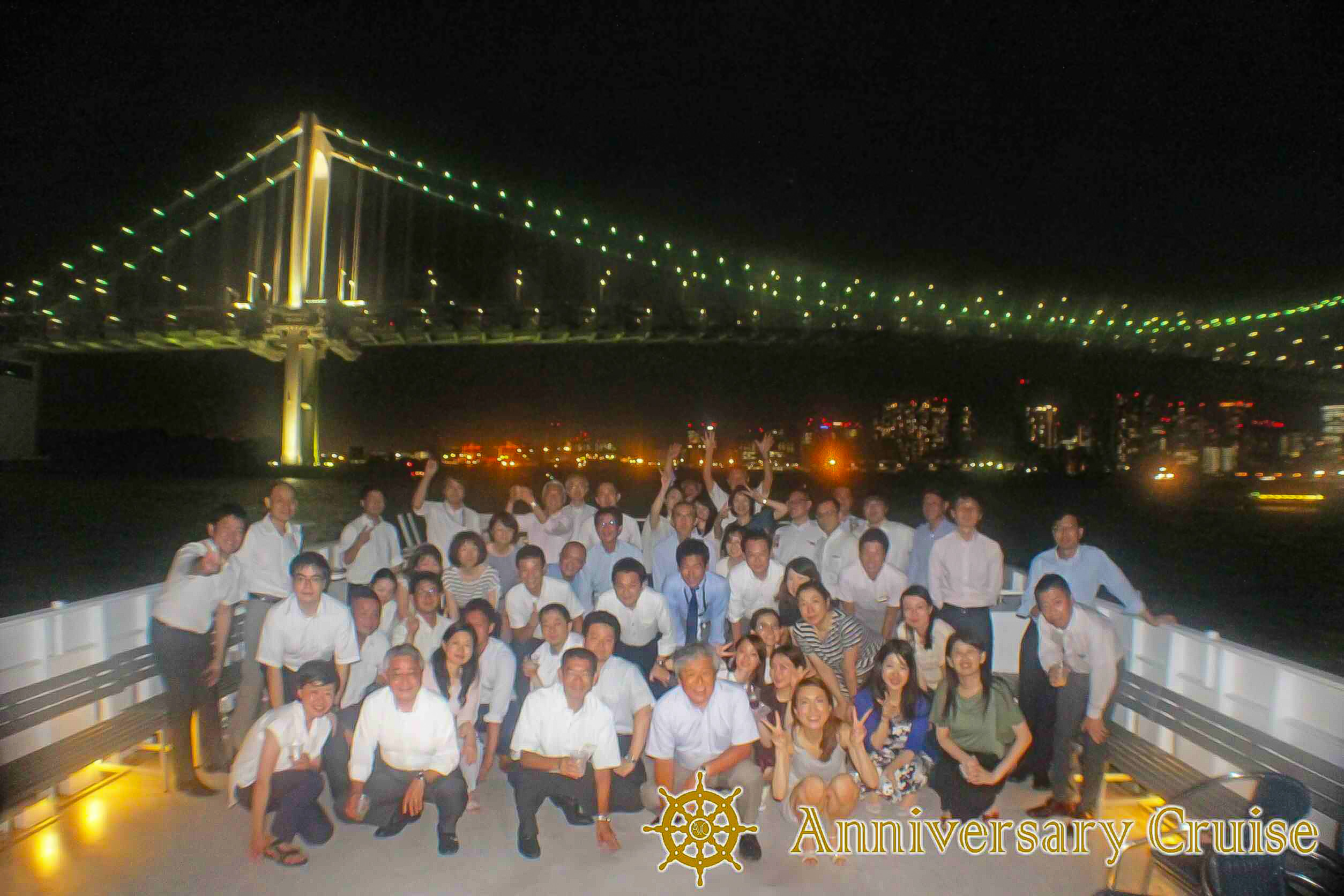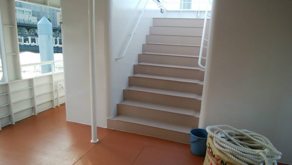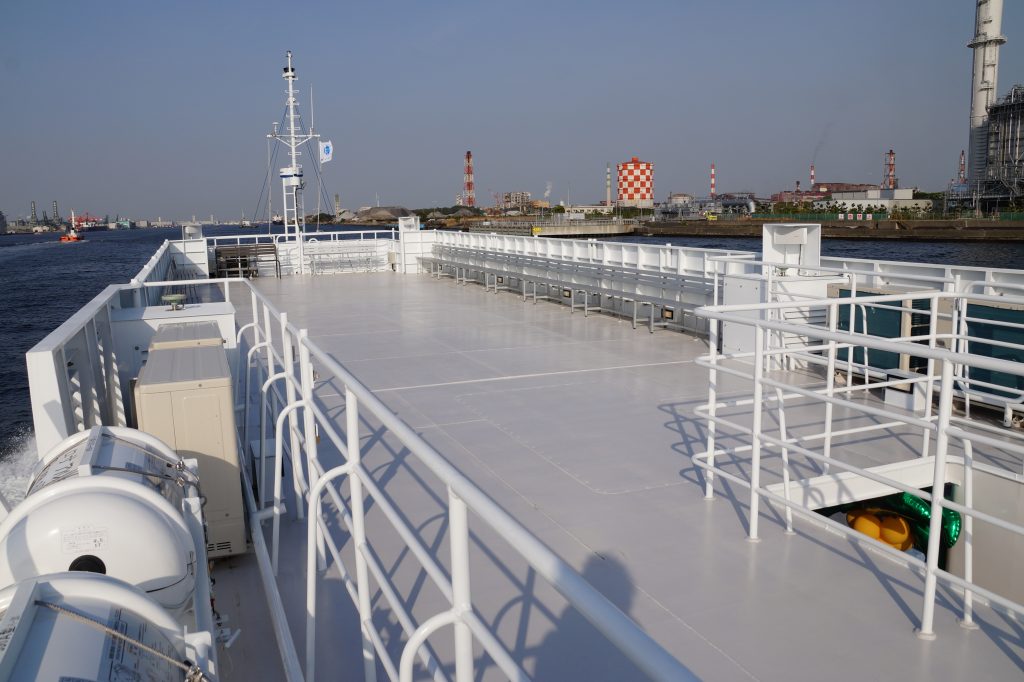 2階デッキも非常に広く、大人数でも一体感のあるパーティーが楽しめます。横浜での大規模パーティーには大変お勧めの大型クルーザーです。