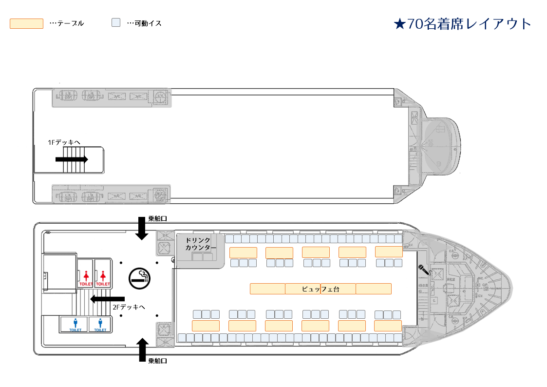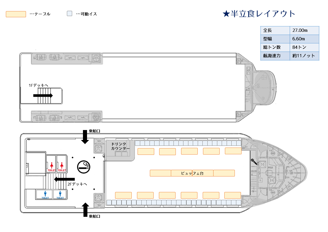 | 船内快適着席人数 | メインフロア約100名 |