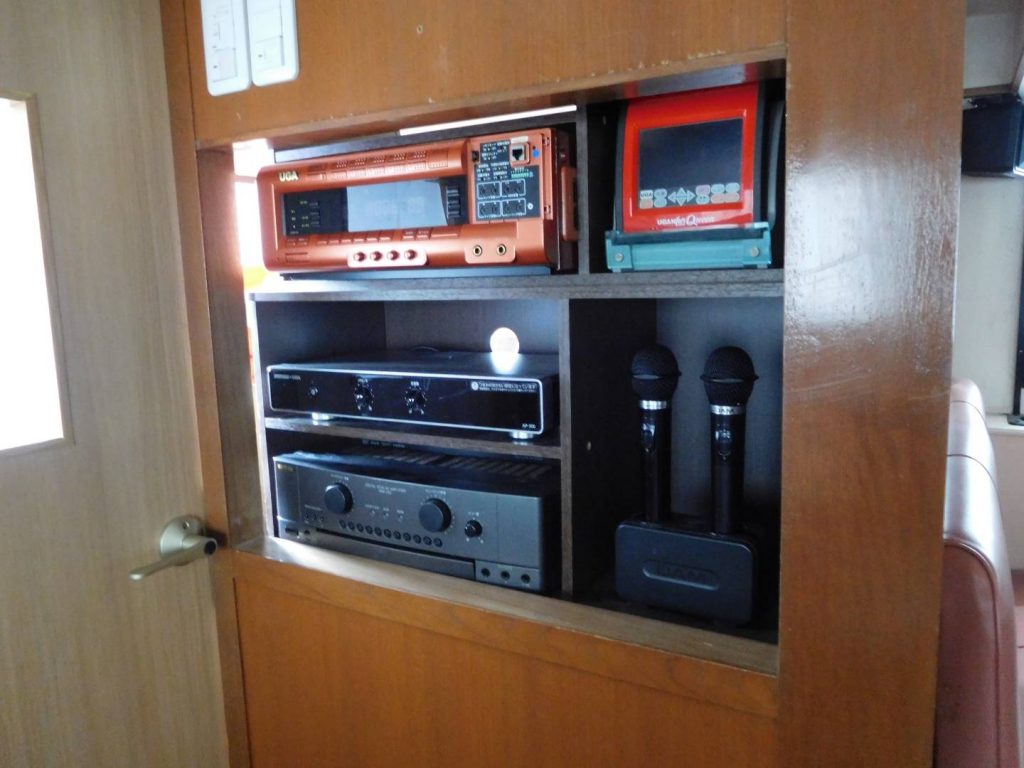 船内の音響はもちろん、カラオケも完備しています。お手持ちの機器からイヤホンジャックでBGMを流すことも可能です。