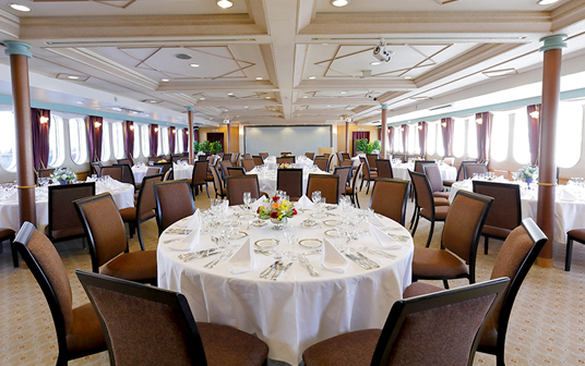 2016年に大規模リニューアルされた船内は洗練された大人な空間に統一されており、その優雅な外見にふさわしいパーティー設備を備えています。最大で400名まで乗船可能な船内は、階層ごとに多数のフロアに分けられています。
