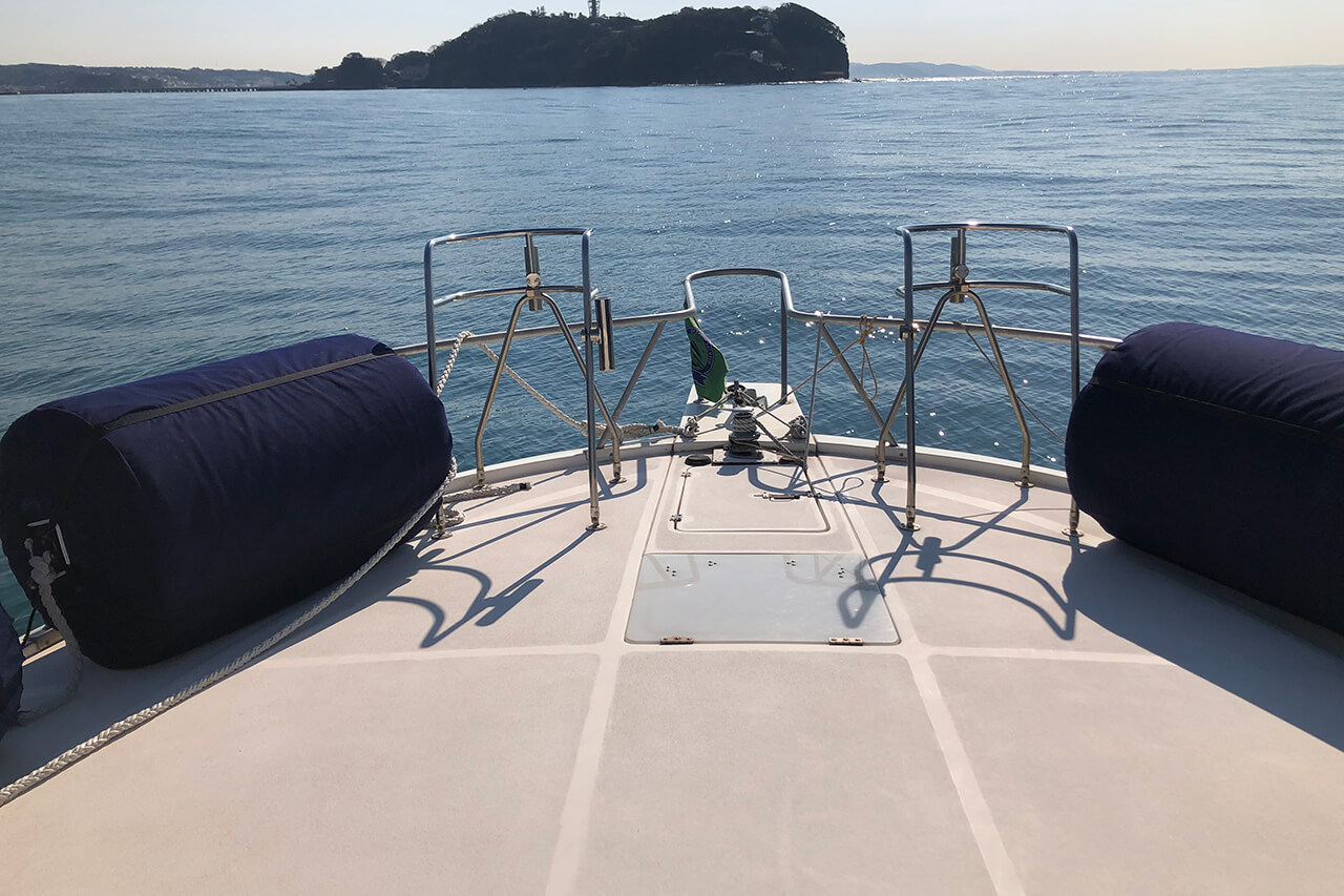 広々とした前方デッキに寝ころべば、空と海に囲まれた開放感を満喫いただけます。