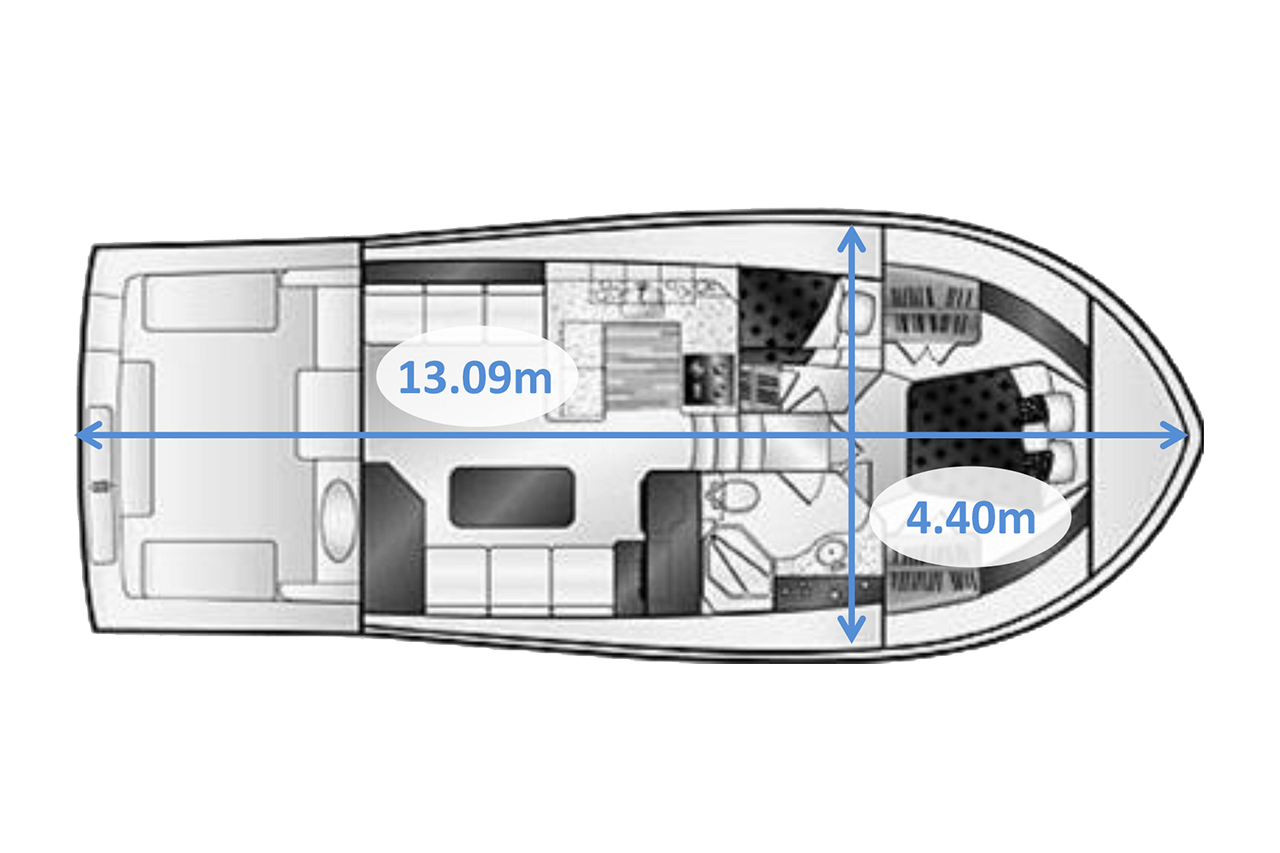 船内のレイアウトや寸法の概算はこちらになります。
