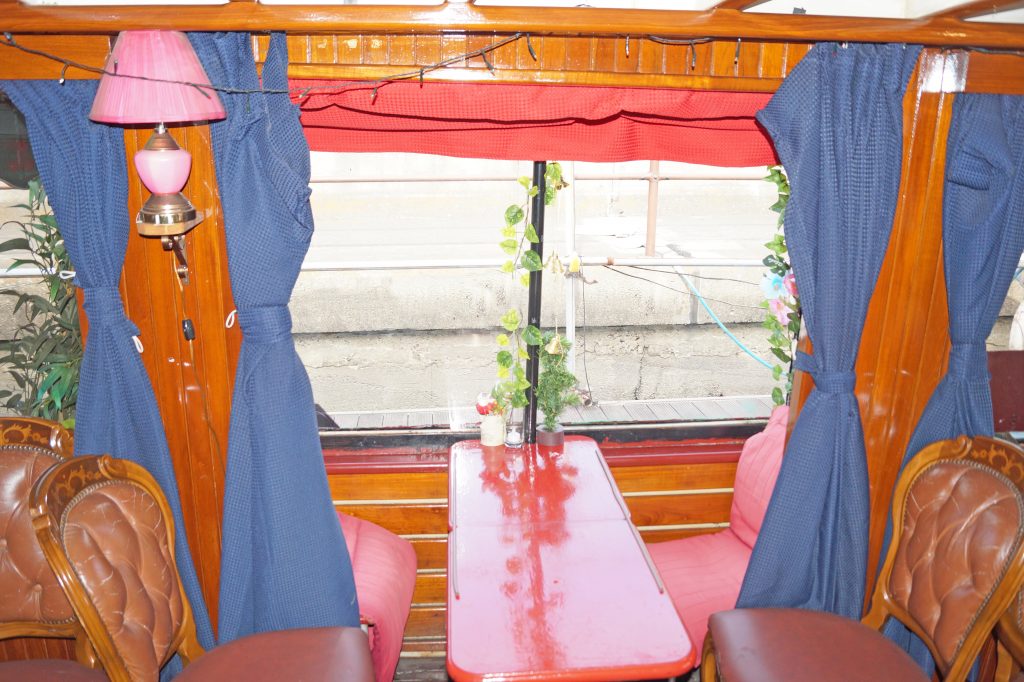 船内は明るい木目調に統一。絨毯が敷かれた重厚感の落ち着いた雰囲気。