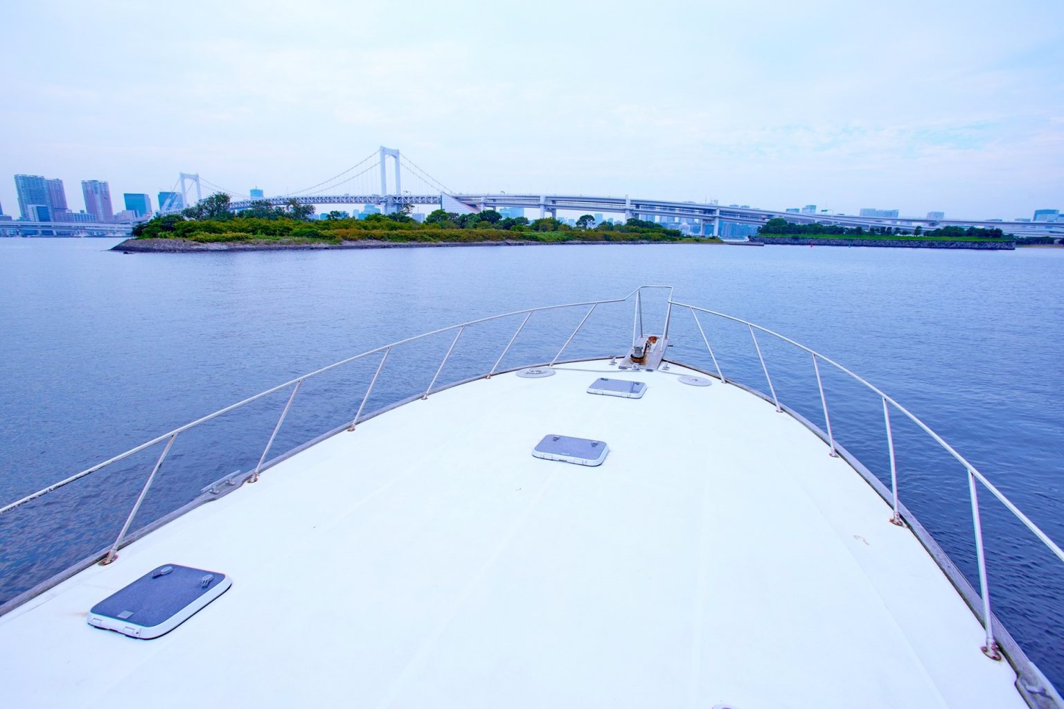 広々とした前方デッキではロマンチックに語らうことも可能です。記念撮影にもおすすめのポイントです。