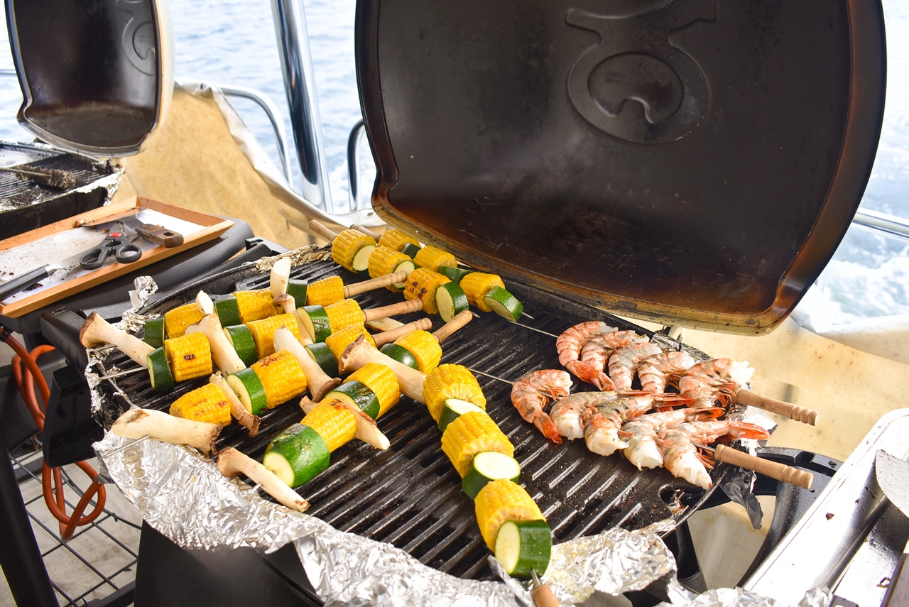 カジュアルに楽しむならバーベキューもおすすめです。船上で塊肉を焼く体験は他では味わうことのできない特別な時間になります。
