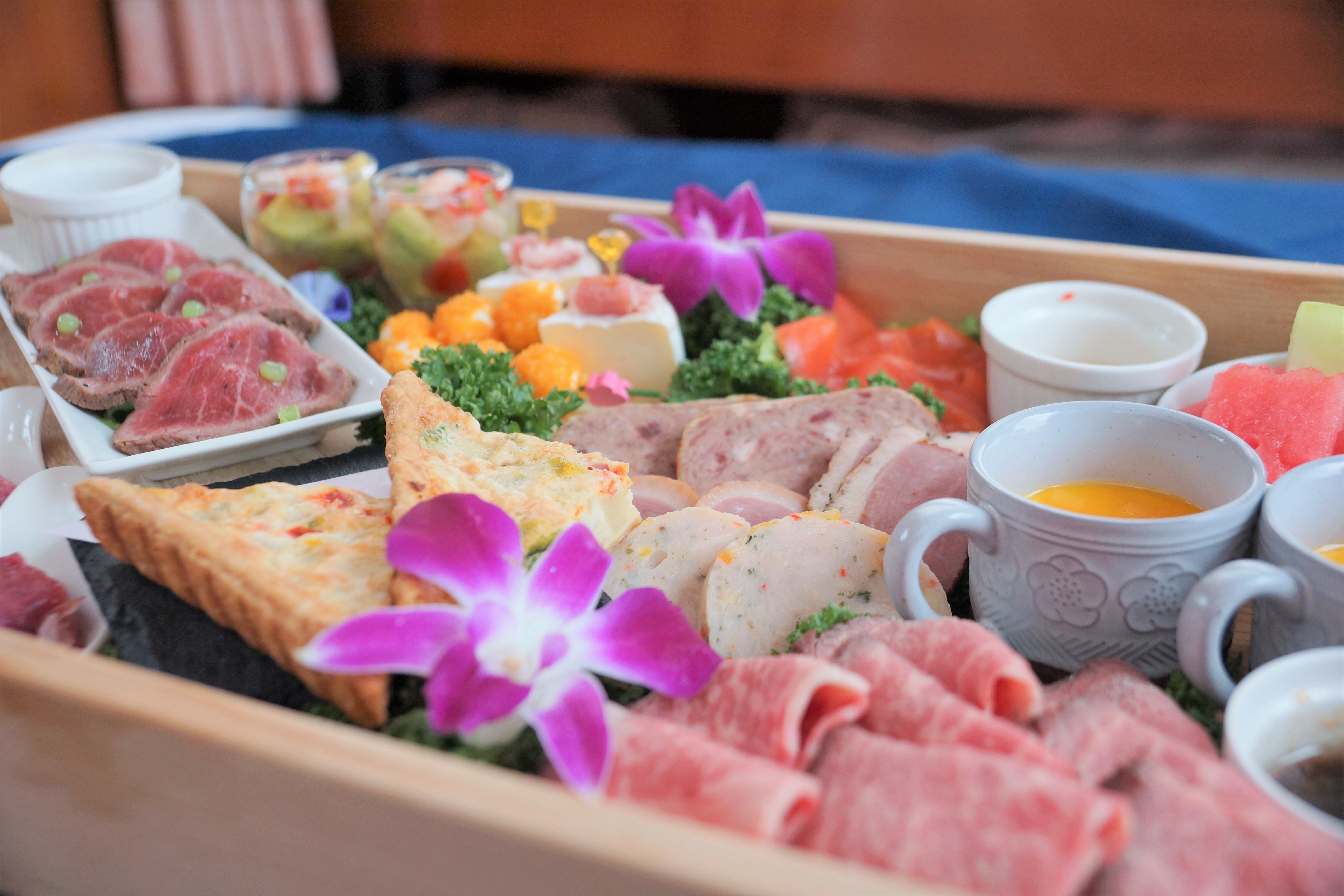 お料理はご予算に応じてアレンジが可能ですので、2人のお好みに合わせて選んでみてくださいね。シェフが一緒に乗船し、目の前で料理を仕上げてくれるプランもあるので、とっておきのデートにおすすめです。カップルプランであれば、ソフトドリンク飲み放題と乾杯のシャンパンがついているのでドリンクに関しても、十分満足していただけます。二人にとって特別な料理やドリンクがあり、用意したいという場合や、サプライズでケーキや花束などのプレゼントを渡したい場合など、あらかじめプランを考えているという方は一度アニバーサリークルーズにお問い合わせいただくと詳しいご相談ができます。
