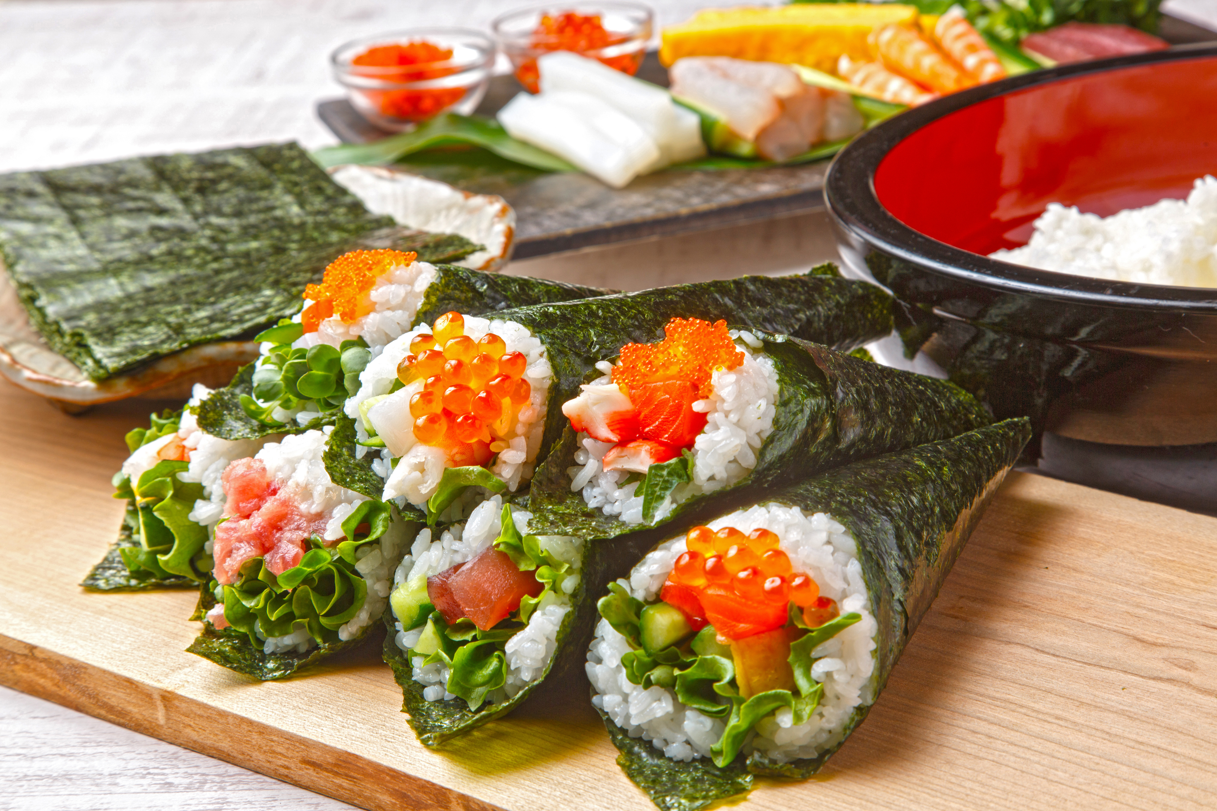アイデア次第でさまざまなものができるのが手巻き寿司の楽しいポイントです。