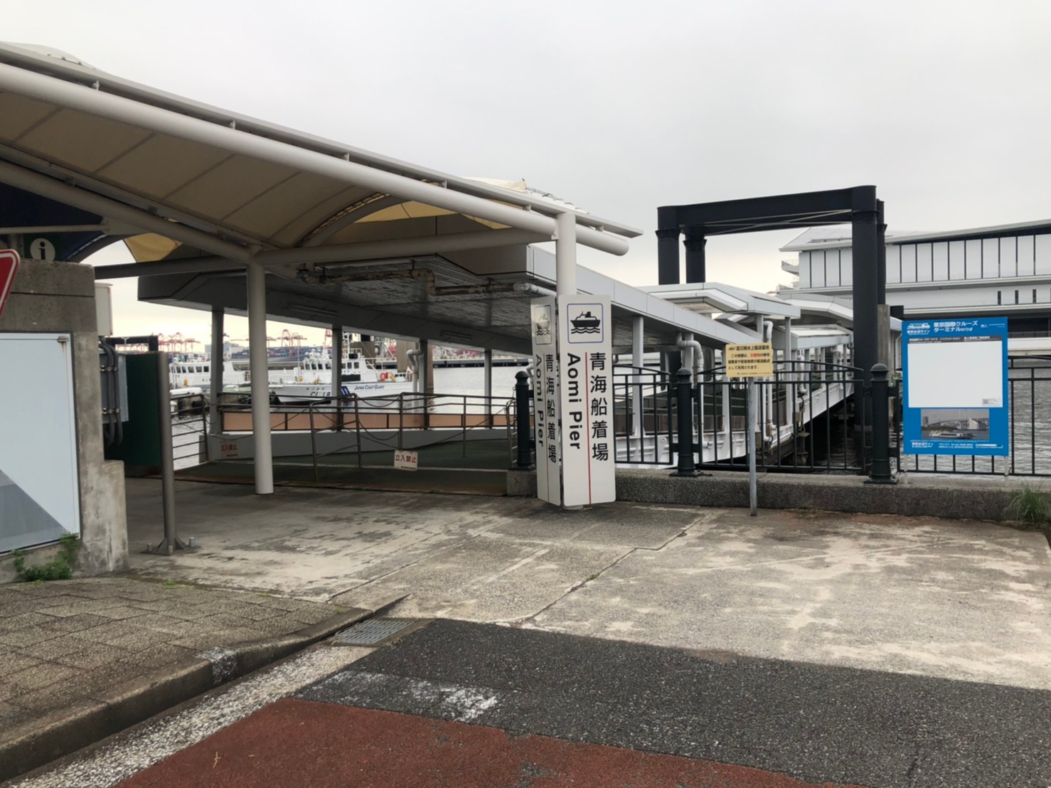 東京国際クルーズターミナルのすぐ横に位置する乗船場所です。ゆりかもめの駅からも歩きやすく、アクセスの良い乗船場所です。周辺にコンビニや売店は有りませんので、駅からお越しの際は途中で必要な買い出しをされるのがおすすめです。