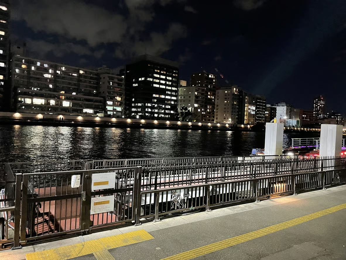 ※両国桟橋は22:00に閉門してしまうため、21:50までに着岸させていただきます。21:50以降に着岸のクルーズ予定の場合、別の桟橋をご提案させていただきます。