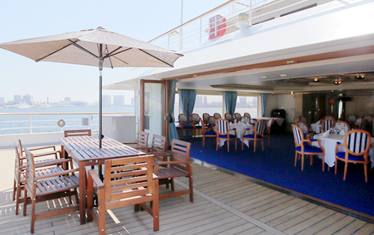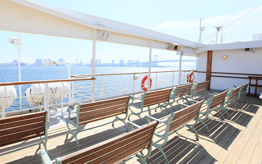 On the open deck spanning two levels, you can enjoy views of Tokyo Bay to your heart's content.