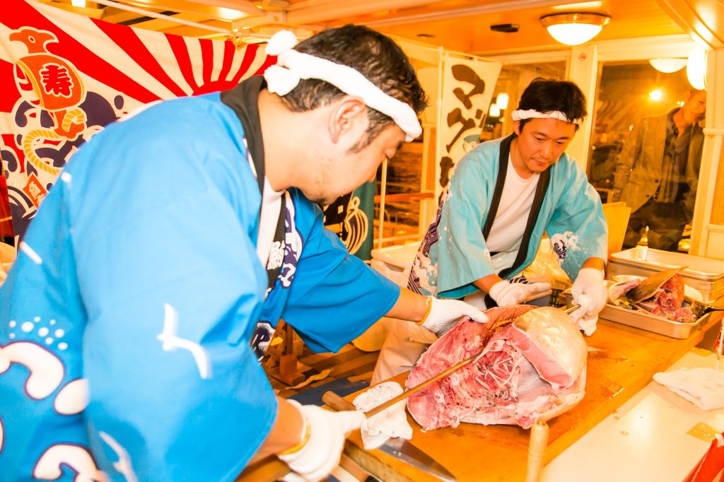 This performance, in which an exciting show is followed by delicious maguro, is a taste experience no matter how many times you have experienced it. It’s perfect for a wedding or other celebration, a commemorative event, or even entertaining guests from overseas. It’s recommended for those looking for a cruise party with impact!