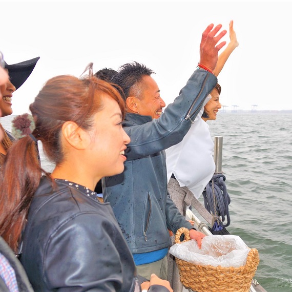 お1人様ひとつずつお手にとり、みなさまそれぞれに故人様への想いを込めて、東京の海へお還しします。