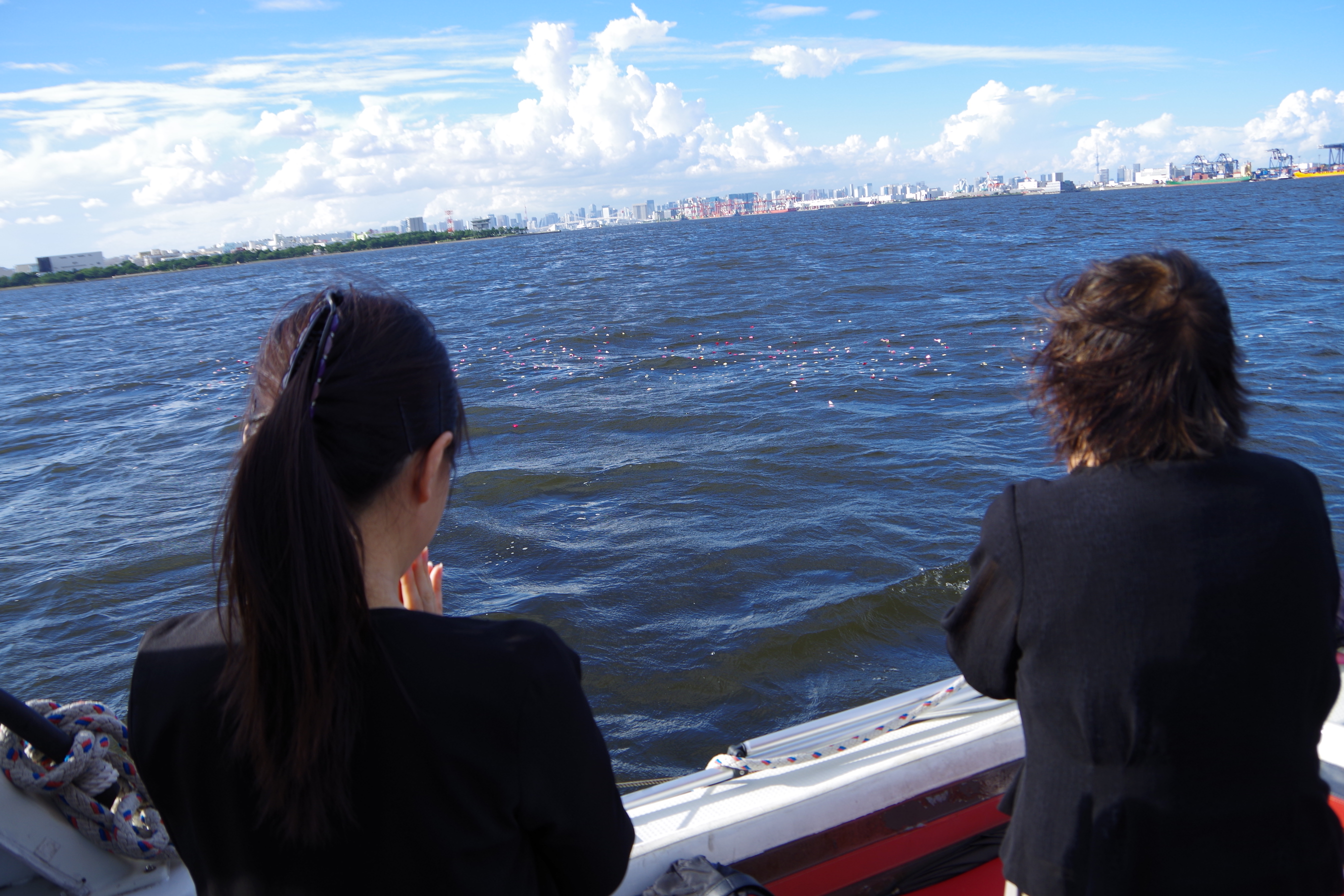 散骨をした後は、水面に花弁が浮かび、故人様のお骨が光に反射して、キラキラととても綺麗でした。