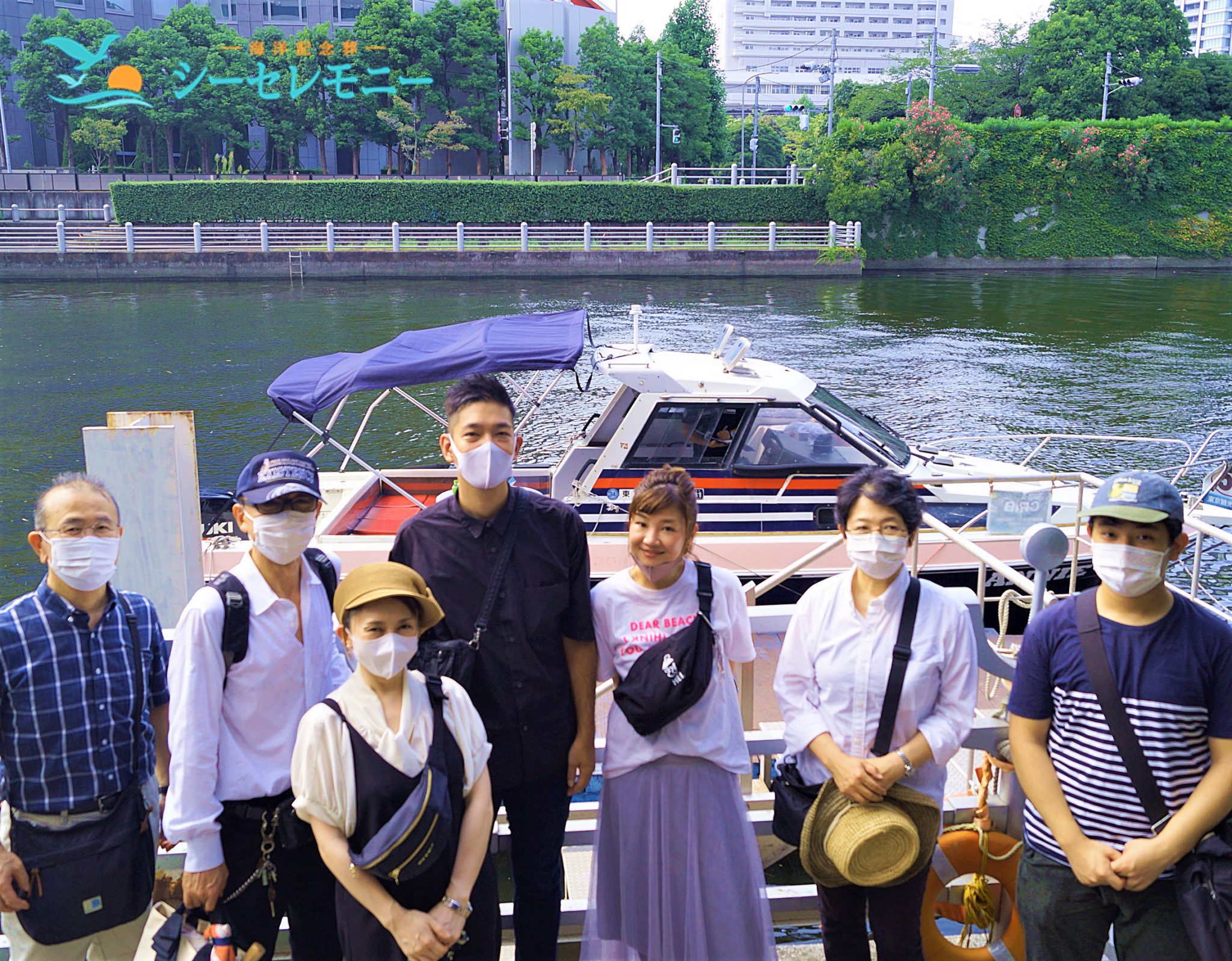 散骨スポットに向かう羽田までの間、故人様とのお別れの前に、何枚かご家族様で最後の集合写真を撮らせていただきました。
