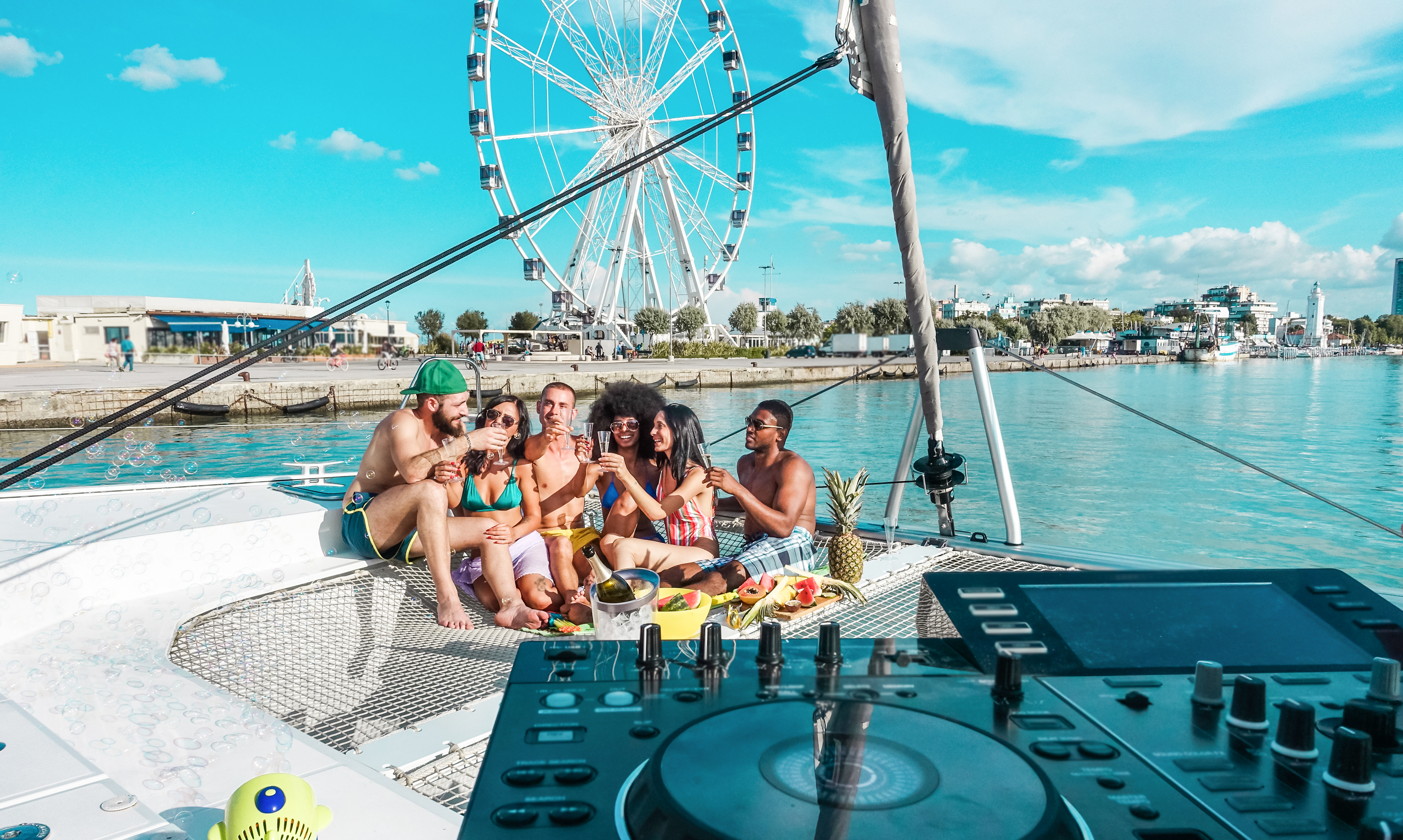 船上ライブとライブハウスのもっとも大きな違いは、その開放感にあります。何ていっても、クルーザーに乗り込んで数分後には、周りは海!見上げれば、空が広がります。都会から一気に自然の空間へ。