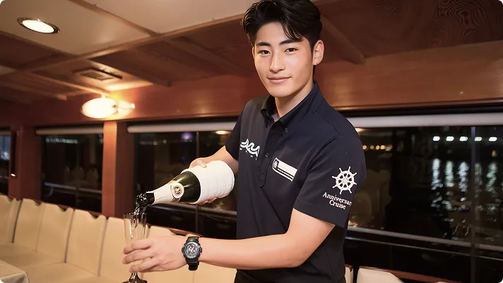 アニバーサリークルーズなら、他のお客様を気にすることなく理想のパーティーが実現できます。ベリーダンサーやマジシャン、マグロの解体ショーを組み込むことも可能です。記載されていないオプションやサプライズでも、可能な限りお手伝いしますので、まずはご相談ください。