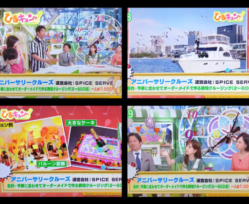 TOKYO MXにて3月29日まで放送されていた東京ローカルの情報バラエティ番組『ひるキュン!』。3月18日放映の生放送では結婚記念日おススメプランとして弊社クルージングサービスが特集されました。