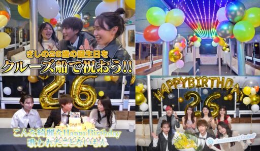 12/9配信、YouTube「ばんばんざい」ぎしさんの誕生日企画にて弊社のルーカス号をご利用いただきました。ぎしさん、みゆさん、るなさんの3名が乗船され、船内でお食事や誕生日サプライズ、マジックなどを楽しまれる様子をご覧いただけます。