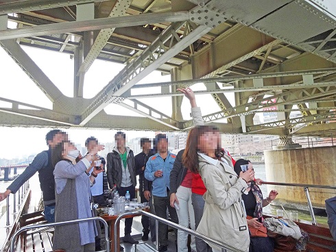 隅田川クルーズは、12つの橋くぐりがご堪能頂け、中には、デッキでしゃがまなければ