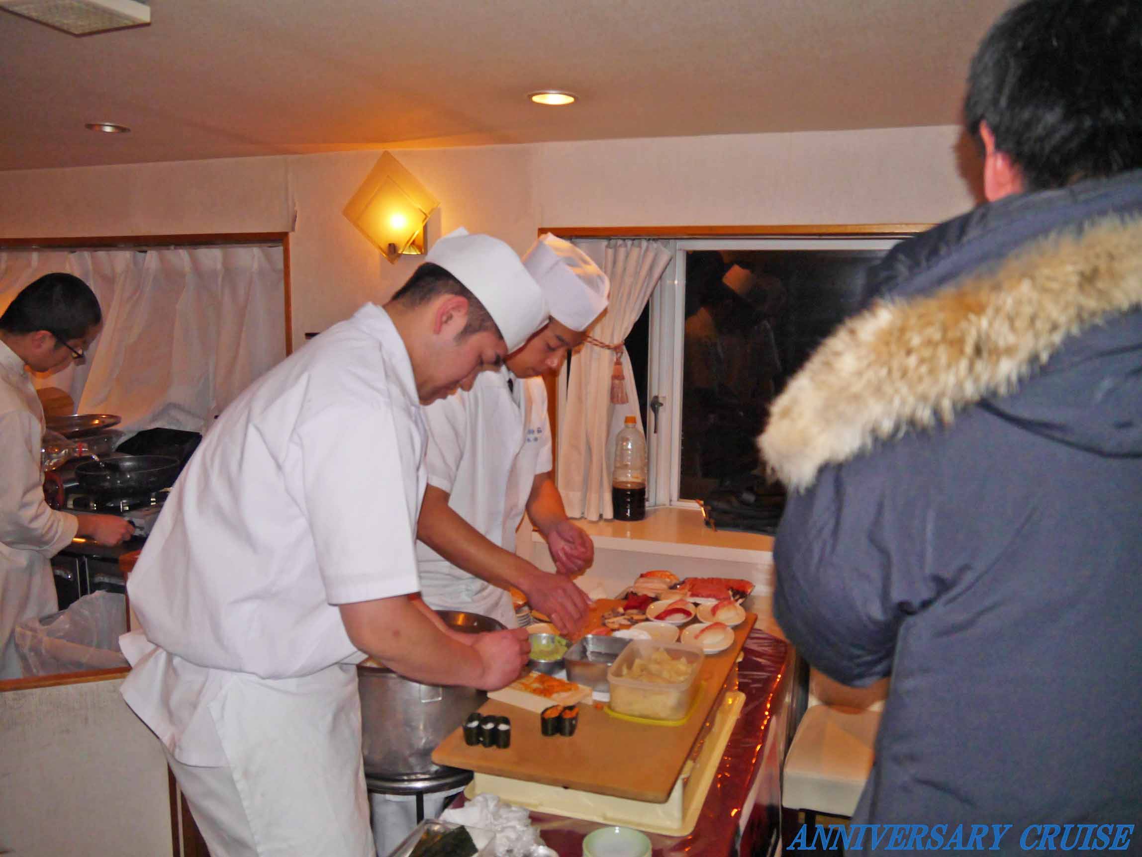 寿司職人が乗船し