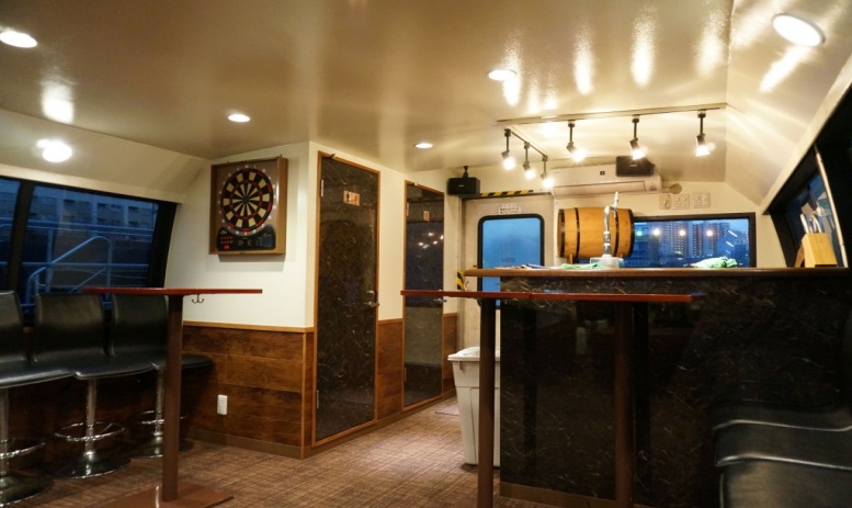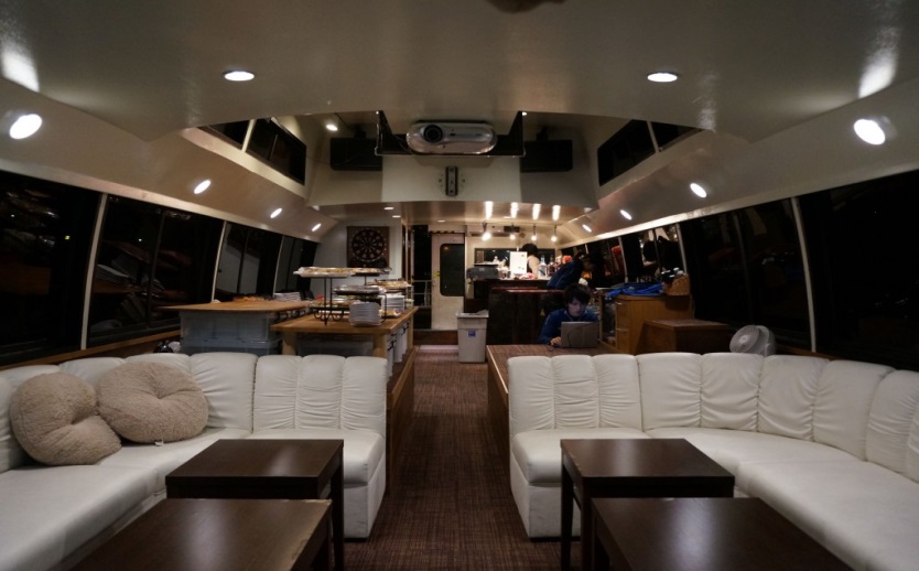 音響映像装備充実の遊び場ラウンジ風の船内は