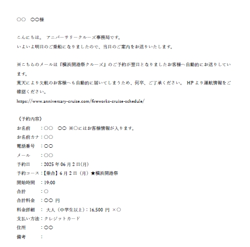 ・予約確認メール
