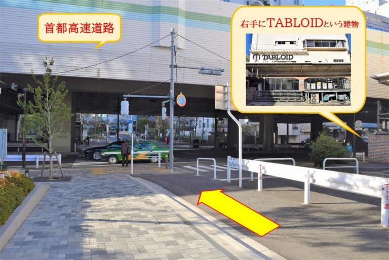 右手に「TABLOID」という建物を見ながら、まっすぐ交差点の方向へ。