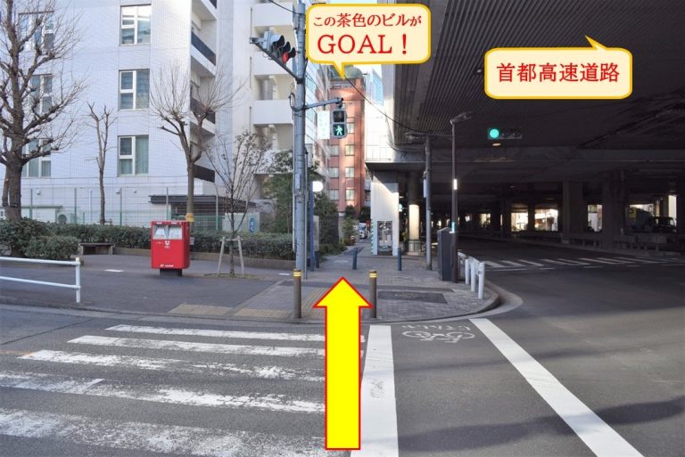 そのまま、首都高の下をくぐるように信号を渡ります。