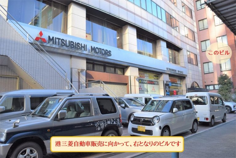 「MITSUBISHI MOTORS」の隣の茶色のビルが『LoungeCRIB』です。