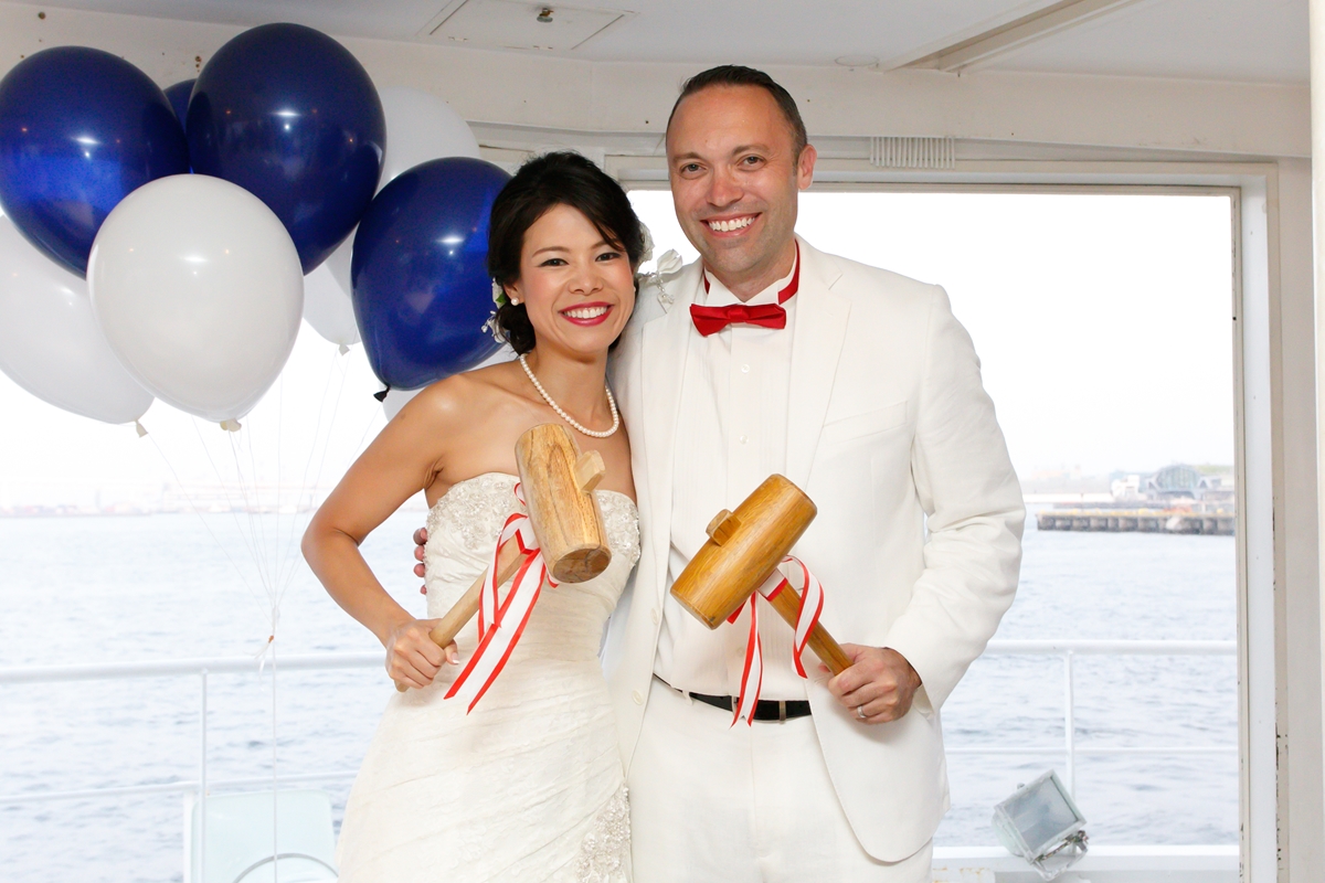 アニバーサリークルーズのオリジナル酒樽と木槌やひしゃく、升まで